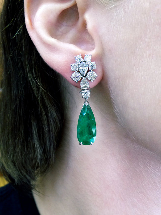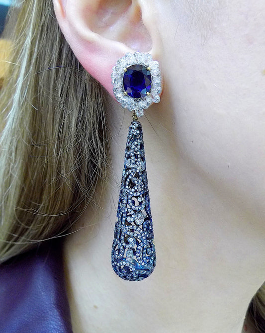 Gold Titanium Briolette Diamond Sapphire Drop Earrings