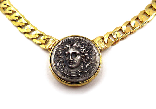 Italian 18K Yellow Gold Coin Chain Necklace 1980s