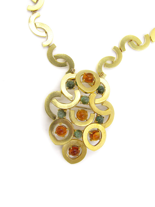 Italian 18K Yellow Gold Citrine Green Fluorite Pendant Necklace