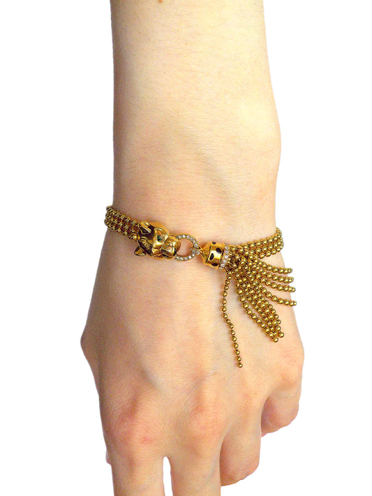 Panthere De Cartier 18K Gold Diamond Onyx Emerald Bracelet