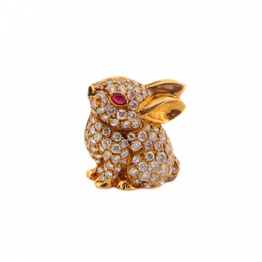 Van Cleef & Arpels 18K Ruby Diamond Bunny Brooch
