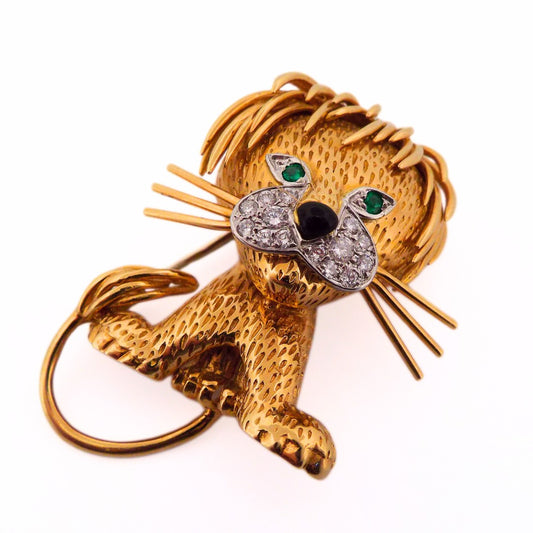 Van Cleef & Arpels 18K Diamond Emerald Lion Brooch