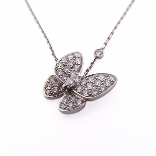 Van Cleef & Arpels 18K White Gold Diamond Two Butterfly Pendant Chain Necklace