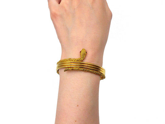 Van Cleef & Arpels 18K Yellow Gold Ruby Snake Bracelet, French