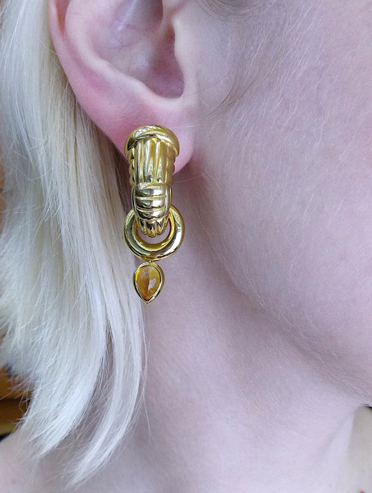 Van Cleef & Arpels 18K Yellow Gold Citrine Hoop Earrings
