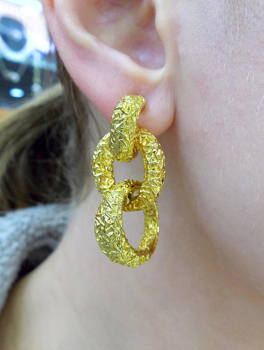 Van Cleef & Arpels Gold Triple Hoop Pendant Earclips
