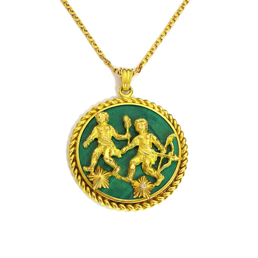 Van Cleef & Arpels Gold Malachite Gemini Pendant Necklace