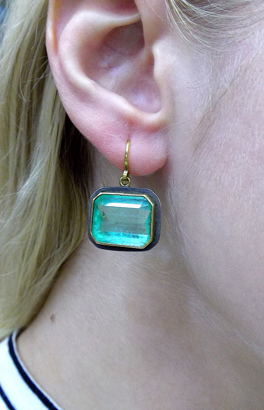 Yellow Gold Silver and Emerald Earrings by Judy Geib