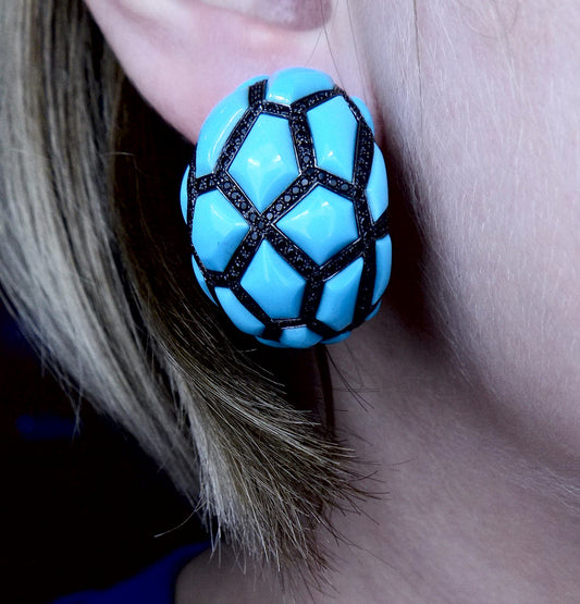 White and Blackened Gold Turquoise Black Diamond Earclips de Grisogono