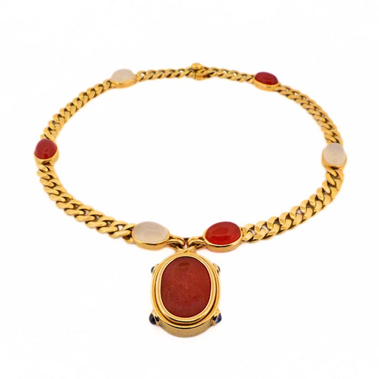 Bulgari 18K Chalcedony Agate Sapphire Cameo Necklace