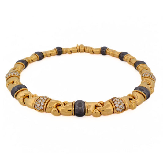 Bulgari 'Gancio' 18K Gold Hematite Diamond Necklace