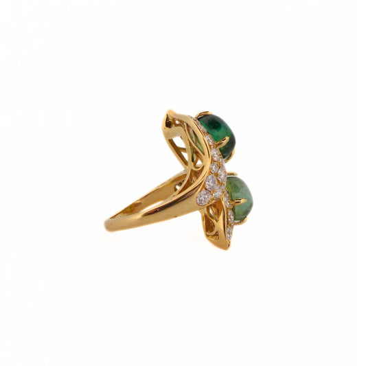 Bulgari 'Bypass' 18K Gold Diamond Green Tourmaline Ring
