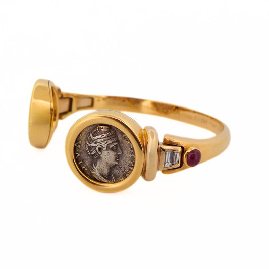 Bulgari 18K Double Monete Ruby Hinge Bracelet