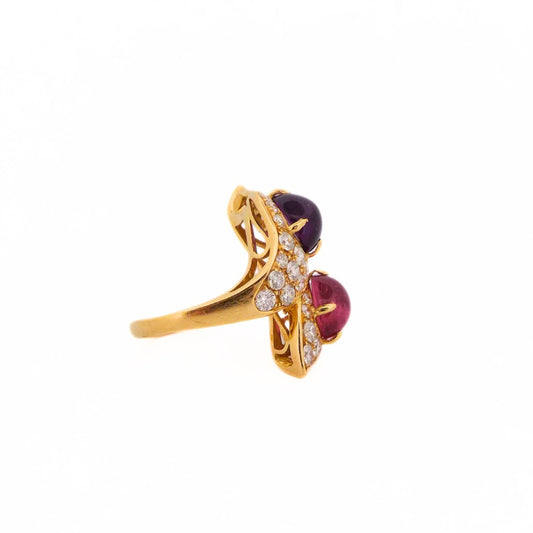 Bulgari 'Bypass' 18K Gold Diamond Pink Tourmaline and Amethyst Ring