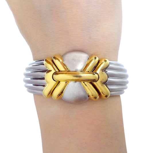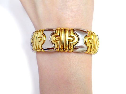 Bulgari Parentesi 18K Yellow Gold Steel Bangle Bracelet