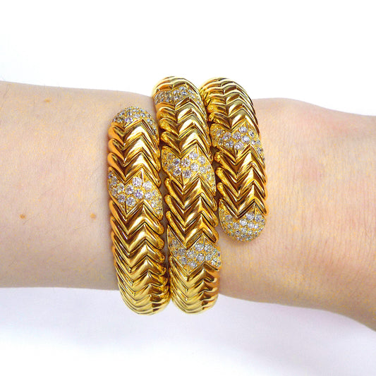 Bulgari Spiga 18K Yellow Gold Diamond Three-Coil Bracelet