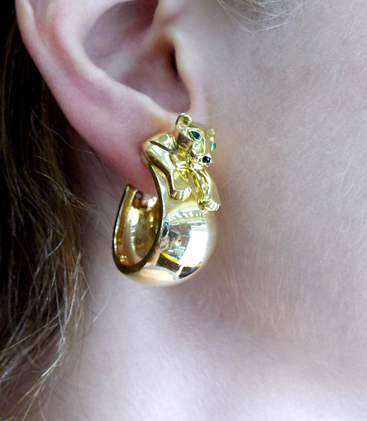 Cartier Panthere Emerald 18K Yellow Gold Hoop Earrings