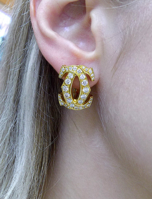 Cartier Double C 18K Yellow Gold Diamond Earrings