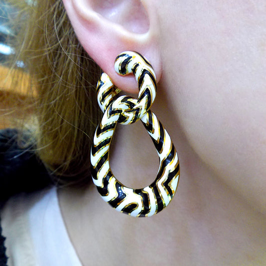 David Webb Zebra Stripe 18K Gold Enamel Double Hoop Earrings