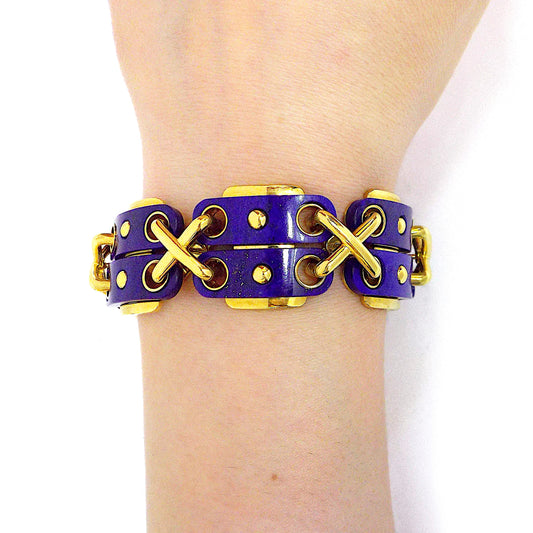 David Webb 18K Yellow Gold Lapis Lazuli Bracelet