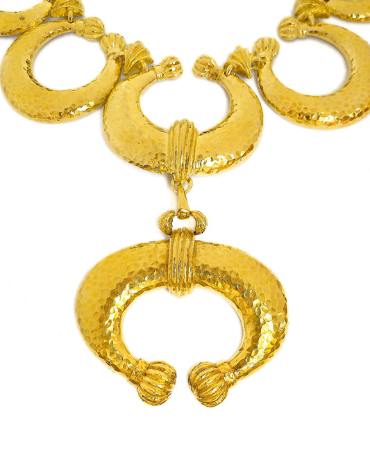 David Webb 18K Hammered Gold Pendant Necklace