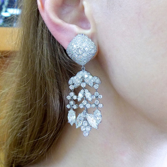 David Webb Platinum Diamond Chandelier Earrings
