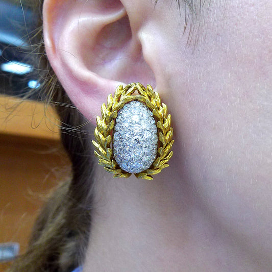 David Webb 18K Yellow Gold Platinum Diamond Clip On Earrings