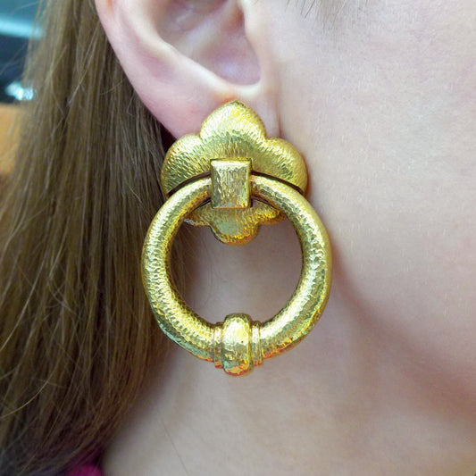 David Webb 18K Yellow Gold Hoop Door-Knocker Earrings