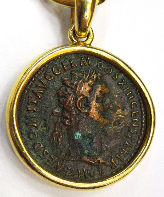 Bulgari Yellow Gold Ancient Coin Pendant Long Chain Necklace