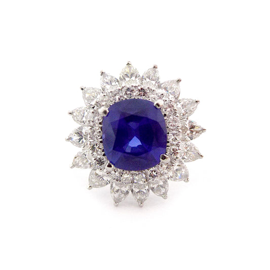 Burma No Heat Sapphire Diamond Platinum Ring