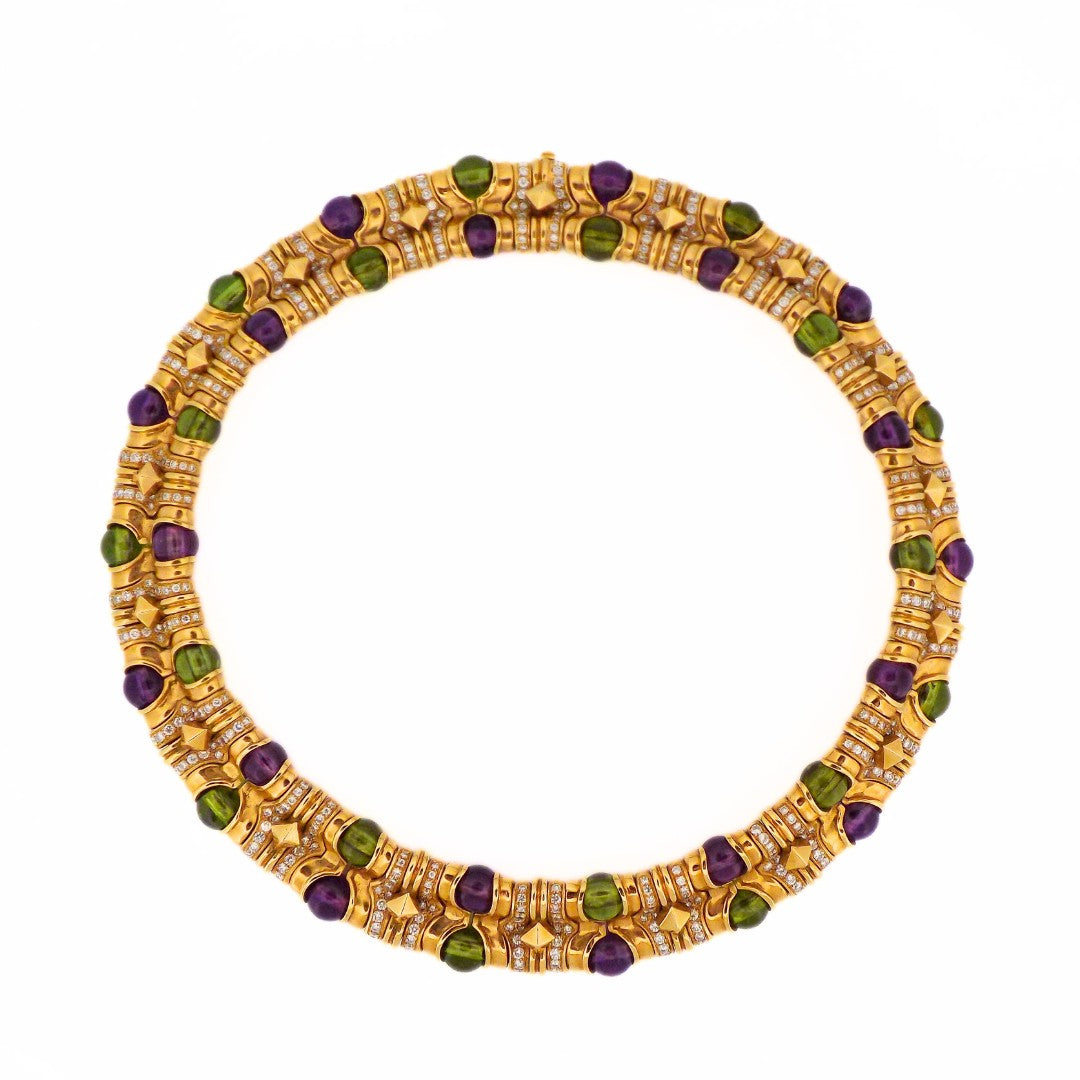 Bulgari 18K Gold Diamond Peridot Amethyst Collar Necklace