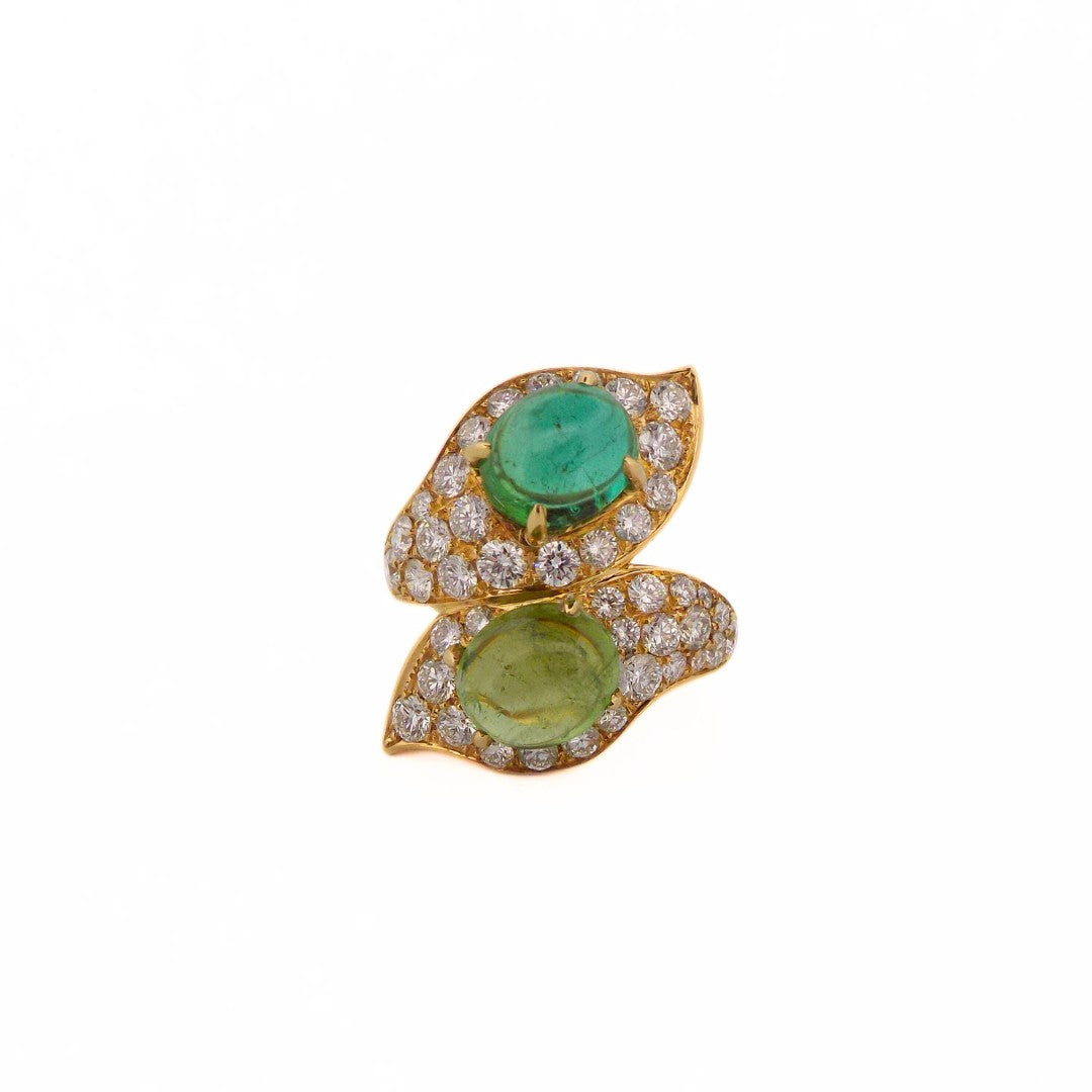 Bulgari 'Bypass' 18K Gold Diamond Green Tourmaline Ring