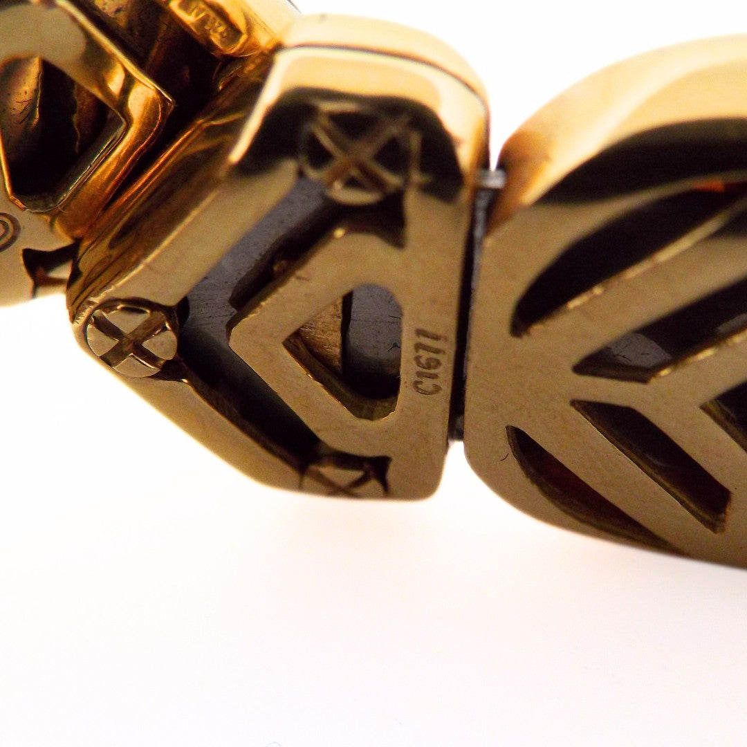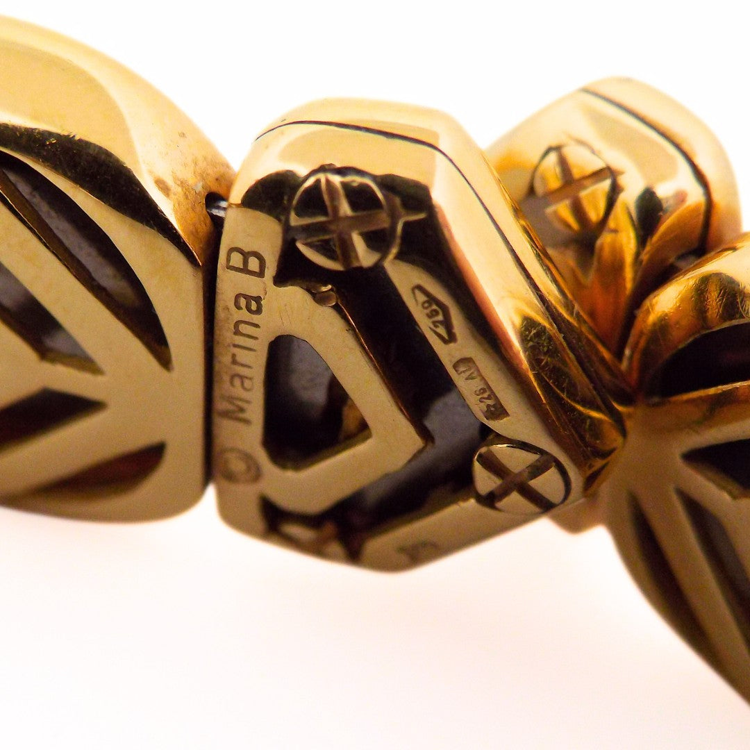 A beautiful choker necklace by Marina B. The choker features mabe pearls alternating with rectangular plaques decorated with grey and white mother-of-pearl. The choker is expandable. Signed Marina B, numbered, with makers marks and marks for 18K gold. Inner circ.: 11.5"