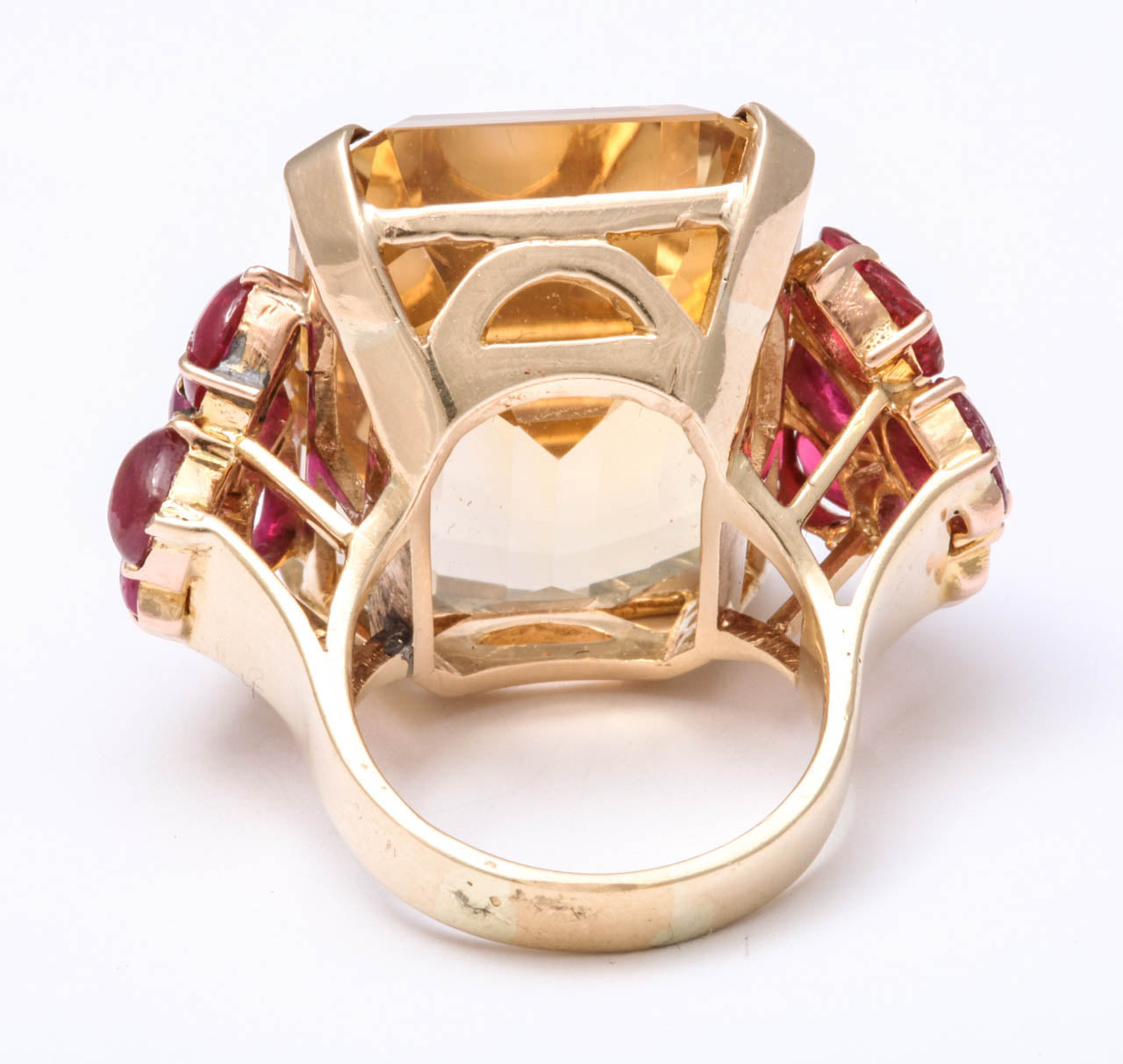Impressive citrine and carved ruby ring, US size 7.25. Citrine weight is approx. 48ct. The weight is 26.3 grams.