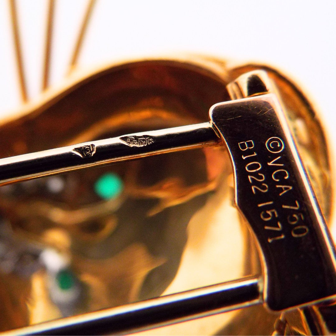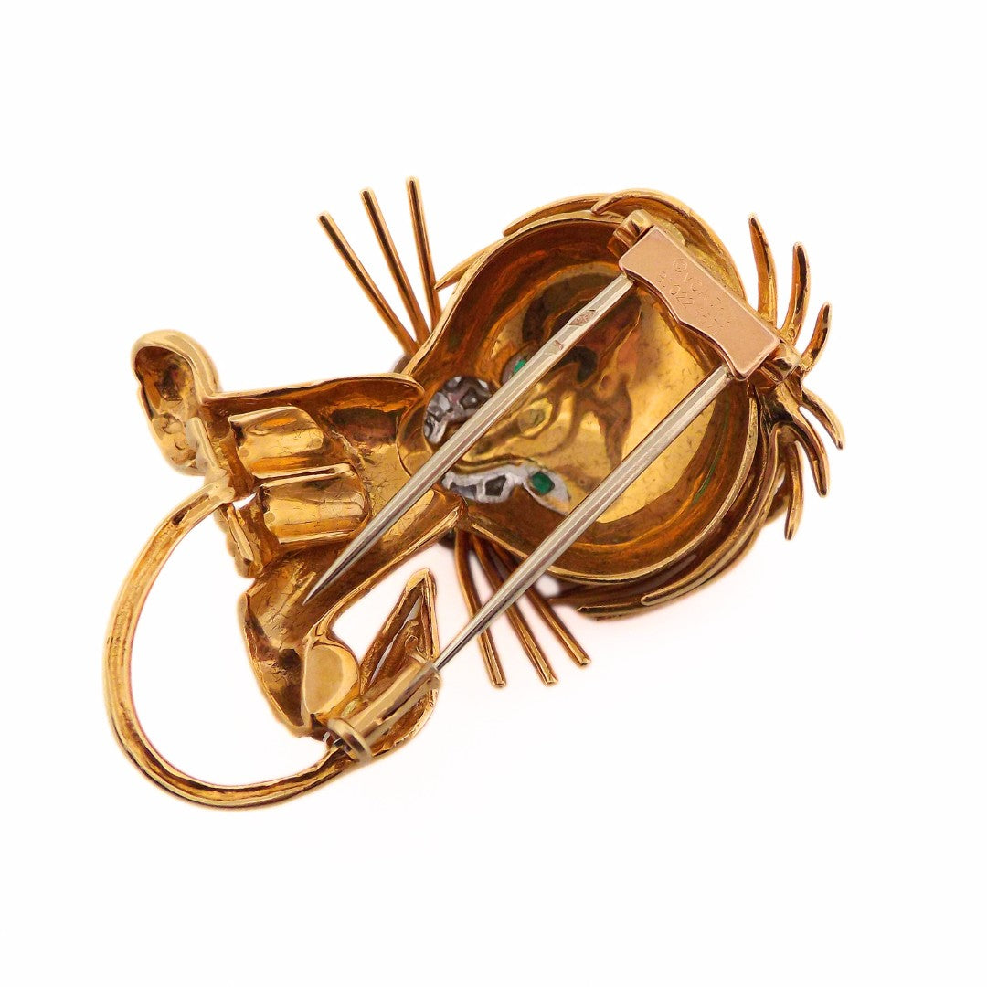 Van Cleef & Arpels 18K Diamond Emerald Lion Brooch